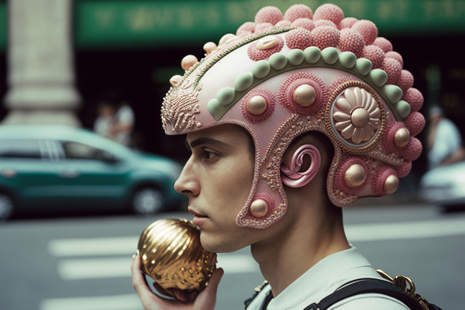 Using to AI generate prompts for attention grabbing headline images like this futuristic motorbike helmet.